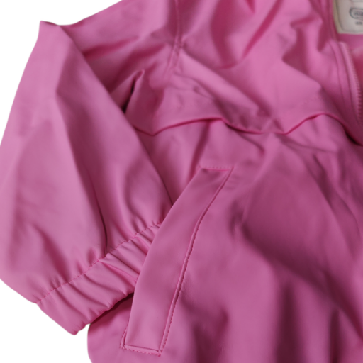 يأتي الجاكيت بسحاب أمامي كامل لسهولة الارتداء، إضافة إلى قبعة عملية لحماية إضافية من الهواء الخفيف. الأساور المطاطية عند المعصمين والحاشية السفلية تمنح انطباقًا مريحًا وتساعد في حماية الطفل من البرودة. كما يحتوي على جيوب جانبية عملية لحمل الأشياء الصغيرة.